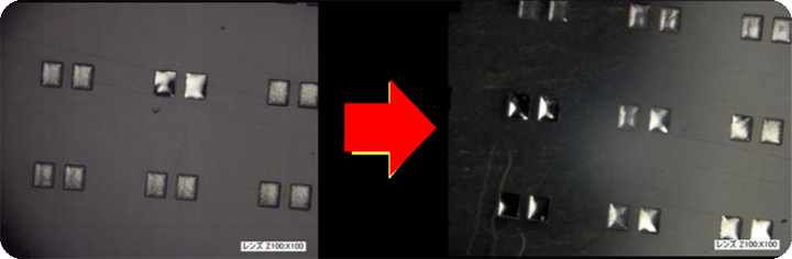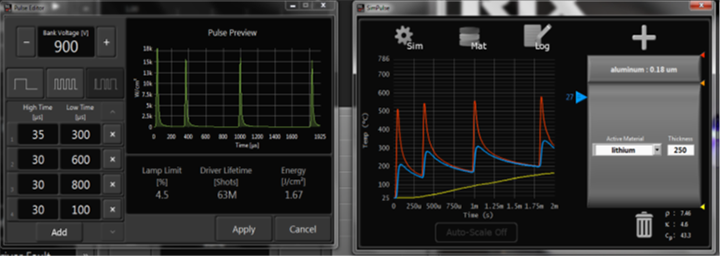 - 자체개발의 XENON램프로 정확한 빛조절이 가능하며, 고전력·단펄스 조사를 실현. 기판에는 저열로 손상을 주지 않는다