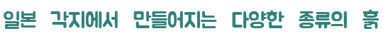 또한 일본은 비나 눈이 많은 기후라 화산 분화로 쏟아져 내린 화산재나 암석이 풍화작용을 통해 만들어진 특징적인 흙이 많이 있습니다.