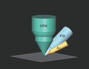 FIB, Ar/Xe빔으로 가공중에 리얼타임으로 SEM에 의한 관찰이 가능