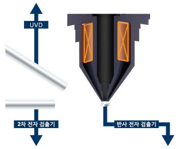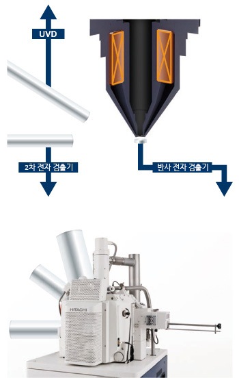 | 검출계 | 2차 전자 검출기, 고감도 반도체 반사 전자 검출기 | ||