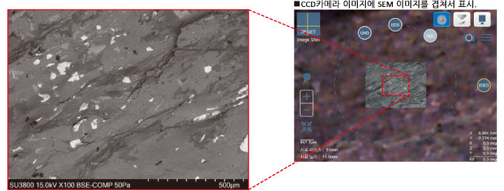 ■가동 가능한 모든 영역을 서포트하고, 대형 시료의 모든 영역 관찰을 실현한 SEM MAP
