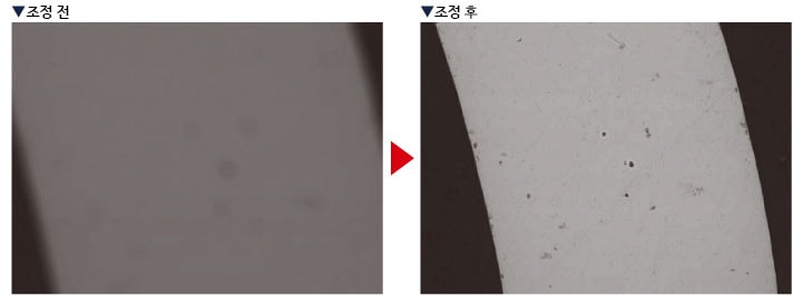 자동 포커스 조정의 알고리즘을 개량하여 기존에 조정하기 어려웠던 평탄한 시료라도 양호한 화상을 쉽게 얻을 수 있습니다.