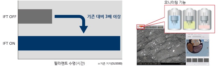 - 필라멘트의 상태를 자동으로 감시・제어해 필라멘트의 사용 연한 증가를 실현.