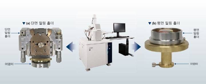 이온 밀링 홀더 링키지 -시료를 이온 밀링 홀더에서 떼어내지 않고, 가공 상황을 반복해서 관찰 가능