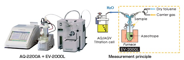 It completely separates water from sample matrices, thus eliminating any side reactions with interfering substances. The EV-2000L can be used with all — Karl Fischer titrators, or any other manufacturer’s titrators.