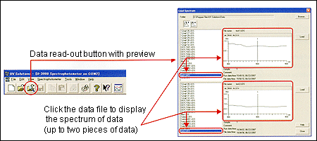A file read-out button with a preview allows for the review of up to two different pieces of data without opening a data file.