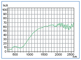 While maintaining the high-performing optical system of the model U-4100, the UH4150 provides higher throughput measurements. In the previous model, a scan speed of 600 mm/min was necessary for a measurement using a data interval of 1 nm. With Model UH4150, you can measure at 1 nm intervals while using a scan speed of 1,200 nm/min, reducing the measurement time significantly.*5 The UH4150 measures from 240 to 2,600 nm in approximately two minutes. It is effective for samples requiring measurement in UV-VIS-NIR wavelength range, such as Solar Reflective Materials.