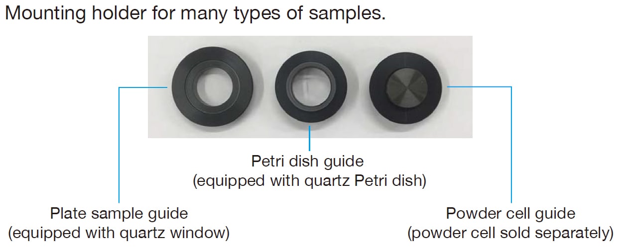 • Powder sample: Fill the powder sample Petri dish with powder, and mount the sample. In addition, the powder cell included with the separate optional solid sample holder can be used.