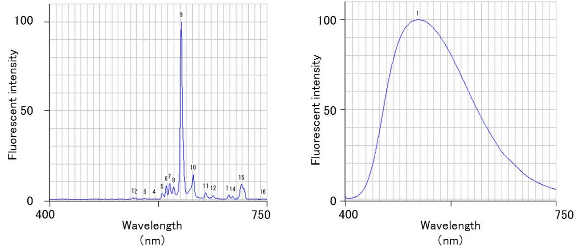 Right: Spectrum of YAG fluorescence substance (slit 20nm)