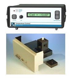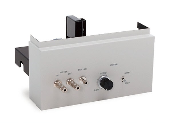 Allows measuring samples at controlled temperature between 5 and 60°C. Stirring is available for added temperature uniformity within the sample. Stirring speed is indenpendently adjustable from the front panel, between 500 and 1200 rpm. A dry air port is available to eliminate condensation when measuring below ambient temperature. (Requires a heated water circulator)