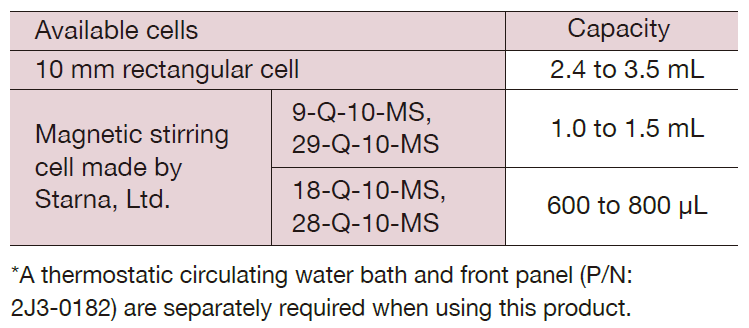 Water from a thermostatic circulating water bath is circulated in the cell holder, and the cell section is kept at a constant temperature. (Temperature control: both R and S)
