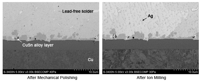 The range of materials and samples that can be subjected to ion cross section milling is not limited to hard matter. In fact, high-quality sectioning can be achieved with the IM4000Plus even with "soft" samples such as paper, polymers, and powders.