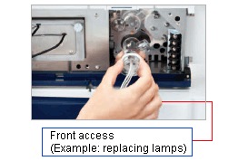 Module operations and the replacement of consumable and maintenance parts can be performed from the front side.
