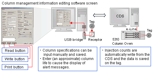 Log information can be written and read through a connector mounted on the column oven or USB port in the computer. ID Tags can be used repeatedly*.